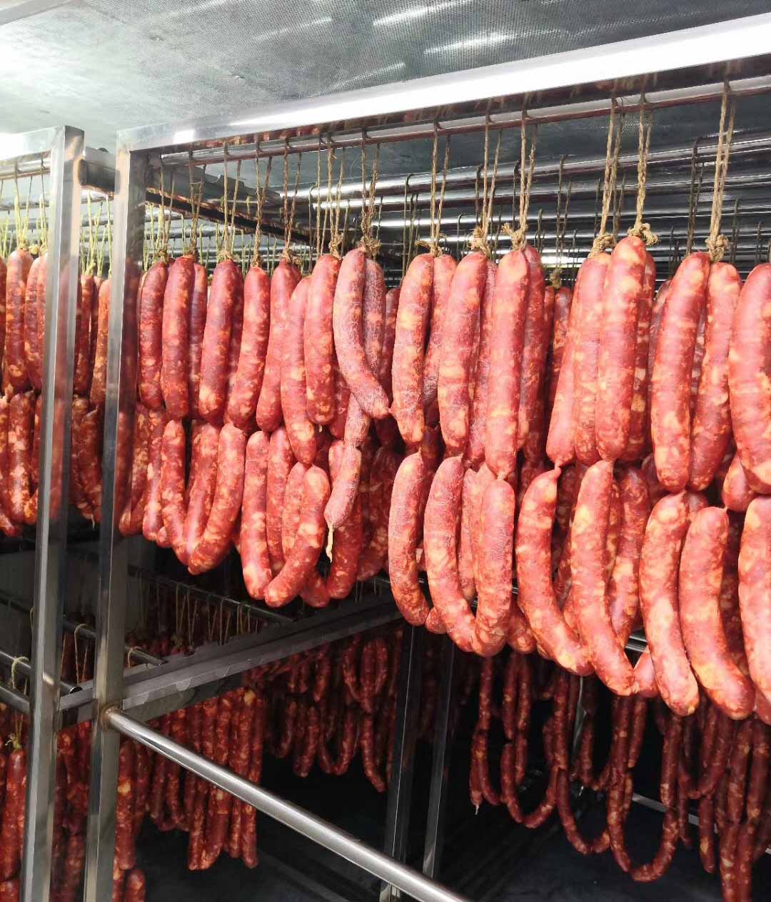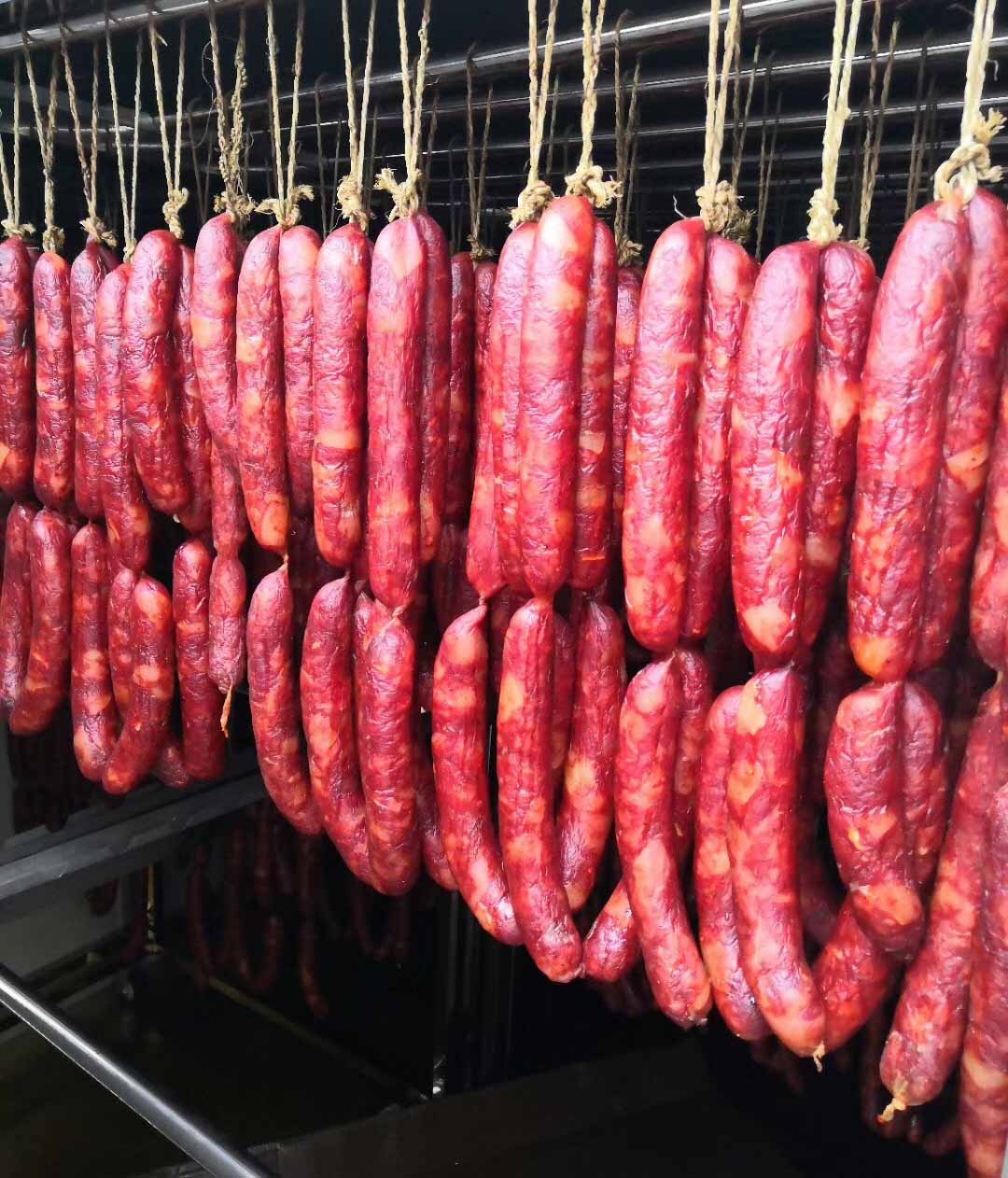 峨眉山肉制品烘干項目順利投入使用,香噴噴,紅亮亮美味的跑山黑豬肉香腸即將出爐!關(guān)注綿陽靖華科技,關(guān)注靖華科技的項目工程